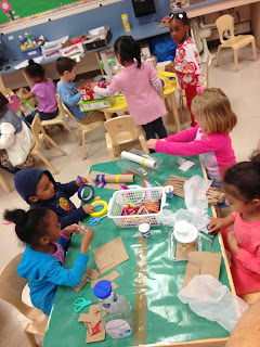We had a blast during the month of April learning about ways to help our Earth! At least once a day, one of our little scholars will show me a triangle on the bottom of their snack container to let me know that it can be recycled, or point out a recycling bin or pick up some liter on the playground. It's great to see what an impact the importance of reducing, reusing and recycling has made on them already!