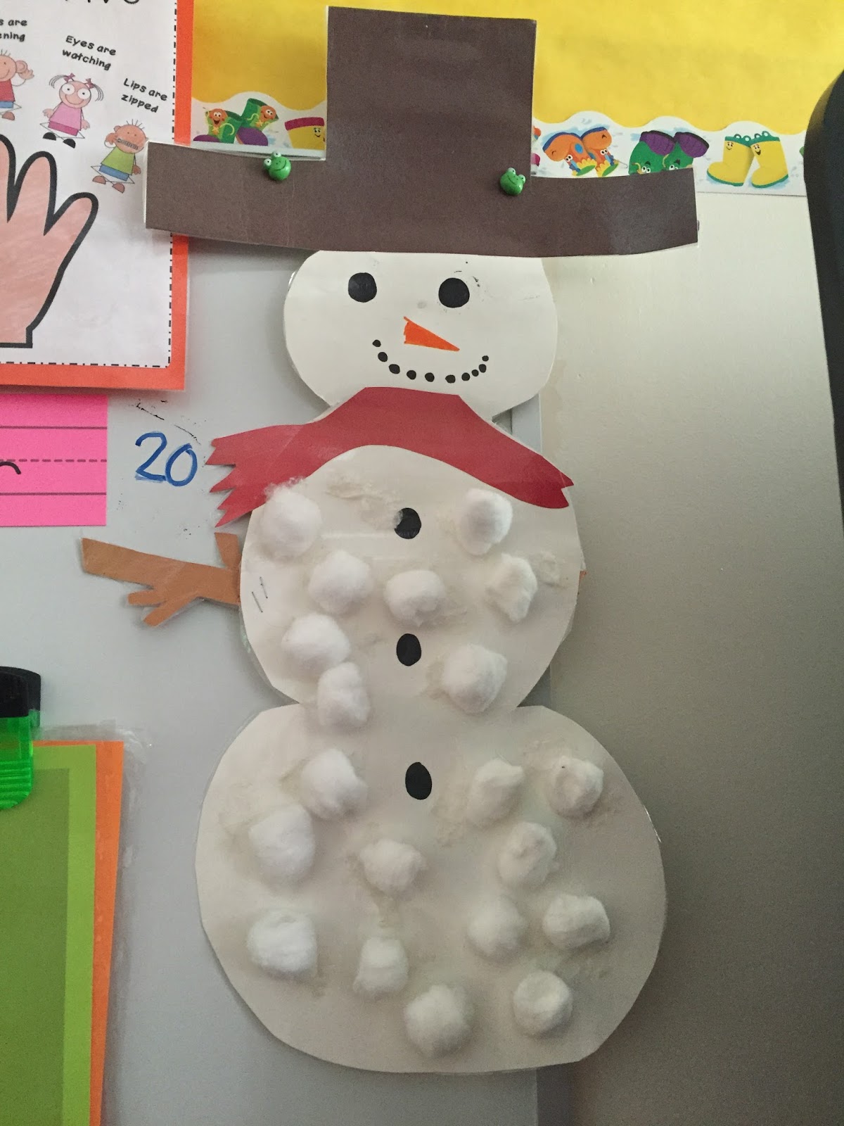 Our class reward system is to receive "snowballs" on a "snowman"! We receive snowballs for working together as a class to try our very best and show good character! We reached our goal of 20 snowballs! Way to go Pre-K! The class will receive a special little treat for reaching our goal. It's time to work our way back up to 20 snowballs again!